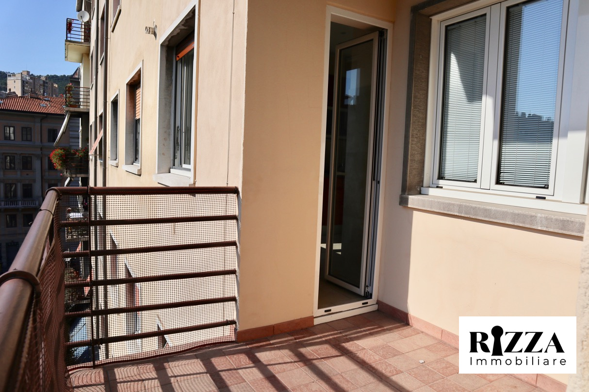 L'immobile, di oltre 100 mq si compone di: ingresso, soggiorno e cucina abitabile con accesso alla terrazza, camera matrimoniale con balcone, camera singola, doppi servizi e ripostiglio (con lavatrice). Completa la proprietà una comoda soffitta all'ultimo piano dello stabile.