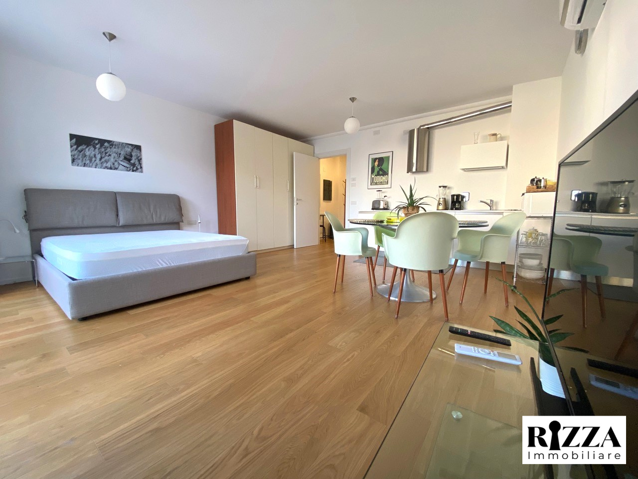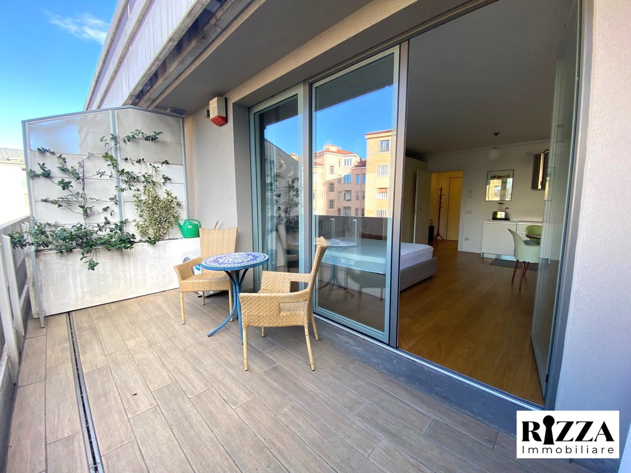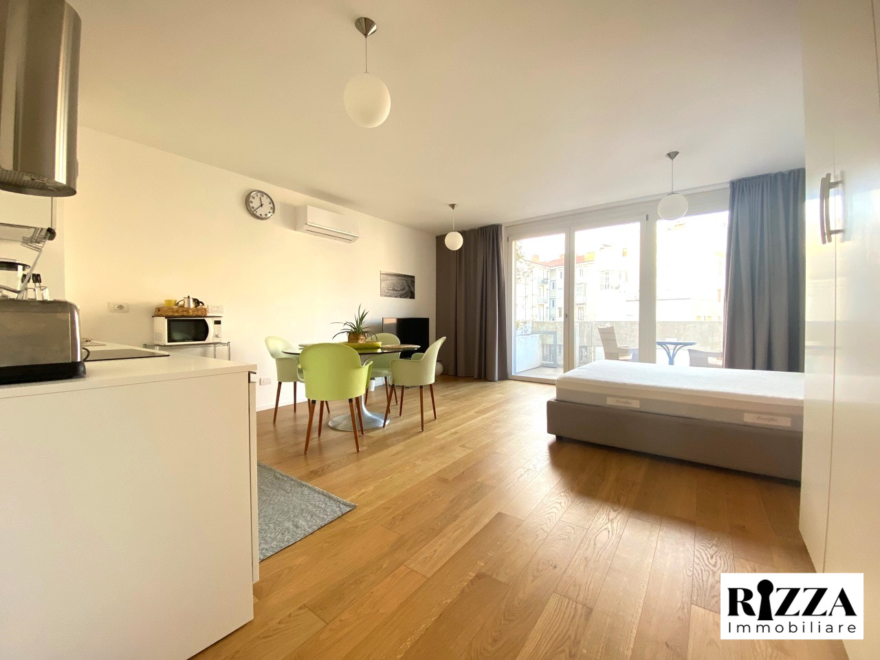 - Monolocale con angolo cottura dotato di lavastoviglie, balcone abitabile e bagno completo.